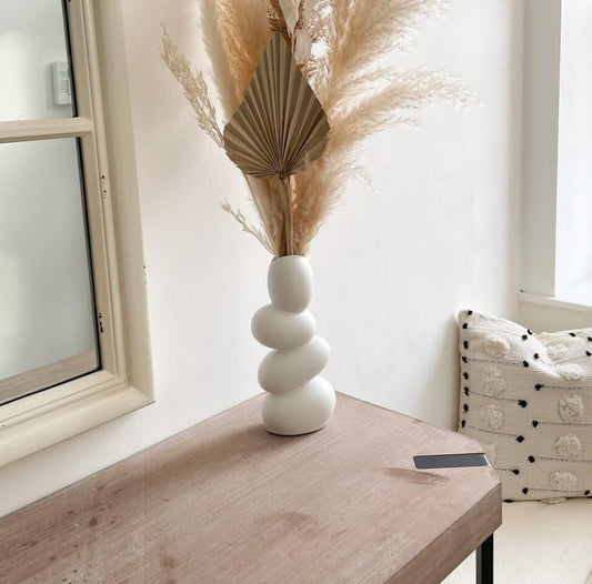 Xotic essentials Hohm Pebble Vase, Ceramic Flower Vases, 10 Inches, Vases for Home Decor, Stone Vase (Raw Matte Finish)(White)