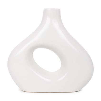Xotic essentials Inverted U Shape Ceramic Vase |Home Decor Centerpiece| Matte Finish, 10 inches (White)