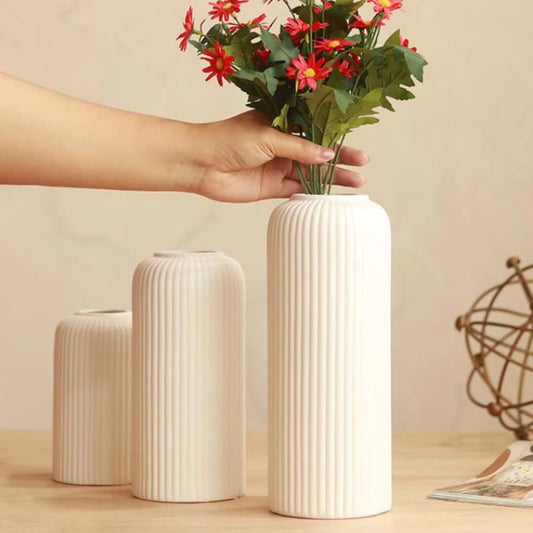 Xotic essentials Modern Ceramic Flower Vase for home decor, Flower Pots for Home Decoration, Gift Items (Set of 3PCS, Off White)