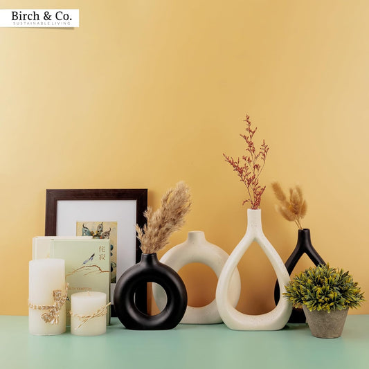 Xotic essentials Ceramic White Oval Vase 8 Inch - Set of 2 / Decorative Oval Vase for Dried Flowers and Pampas Grass/Vases for Home Decor
